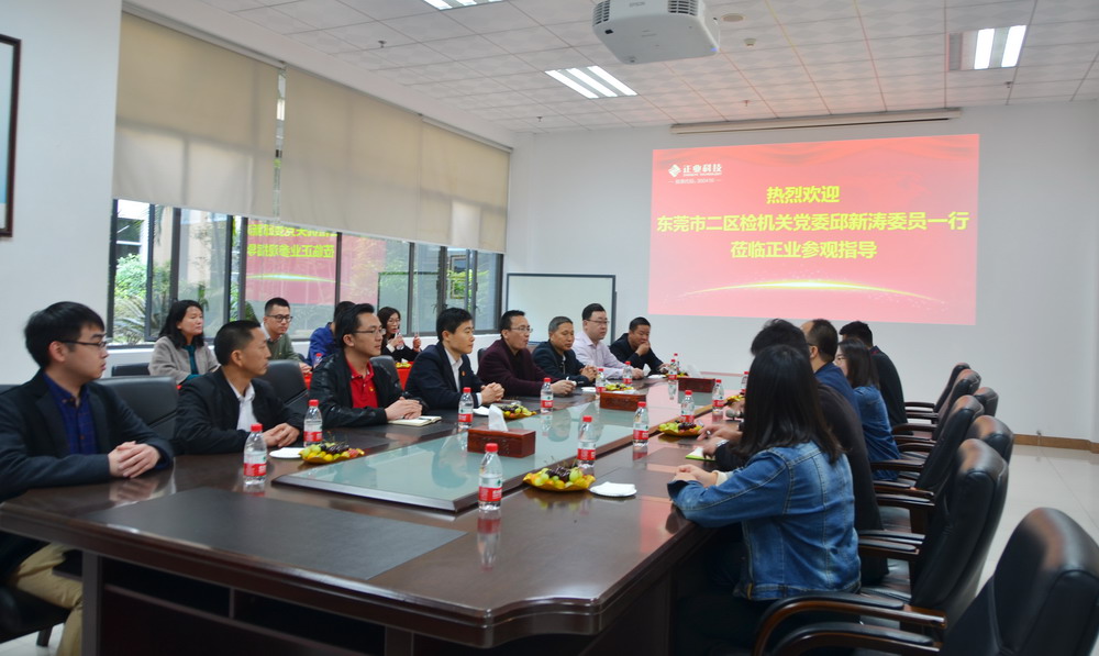 1月25日,為走進(jìn)、了解和支持民營企業(yè)黨建工作,東莞市二區(qū)檢機(jī)關(guān)黨委邱新濤委員一行20余人蒞臨正業(yè)科技進(jìn)行參觀考察交流。正業(yè)科技總裁辦主任雷卓林、總裁辦品牌部經(jīng)理周亮等領(lǐng)導(dǎo)熱情接待了來訪嘉賓。
