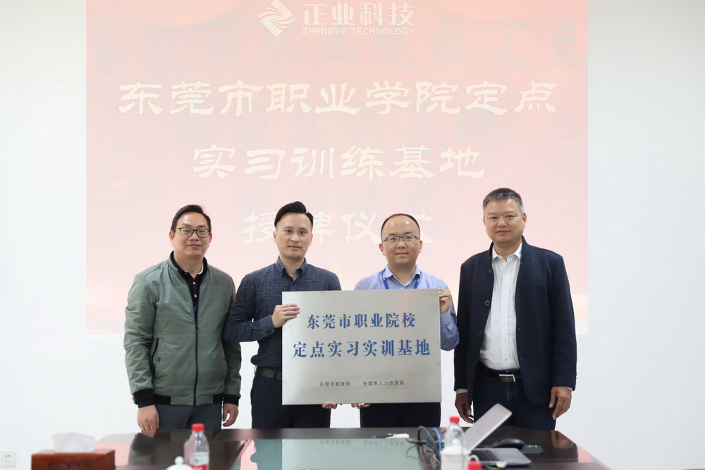 4月2日上午,正業(yè)科技“東莞職業(yè)院校定點實習實訓基地”授牌儀式在松山湖總部大樓順利召開,東莞市技師學院副院長張大慶、松山湖人力資源分局培訓就業(yè)辦副主任羅堯鈞、校企合作與就業(yè)處副處長郭中華、趙偉榮老師以及正業(yè)科技總裁辦主任雷卓林、人力資源中心經(jīng)理吳雪等領(lǐng)導出席授牌儀式。