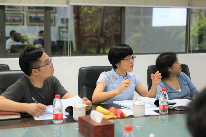 ▲松山湖科創(chuàng)局領導討論項目市場應用情況