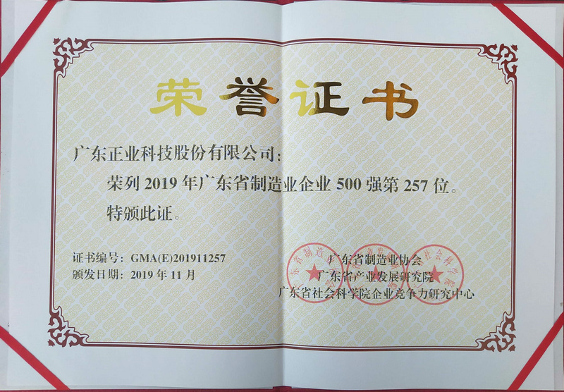 正業(yè)科技榮列“2019年廣東制造業(yè)企業(yè)500強”榜單,這充分彰顯了公司在制造領(lǐng)域深耕細(xì)作,所表現(xiàn)出來的卓越綜合實力和強大市場競爭力。