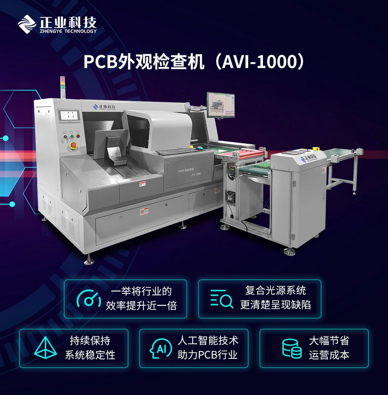 正業(yè)科技AVI-1000系列PCB外觀檢查機,檢測能力尤其出眾,適用于PCB出廠前的外觀檢查,對其缺陷、瑕疵進(jìn)行檢測,自動上料,出料自動水平堆疊,自動運輸?shù)?/span>VRS工位。
