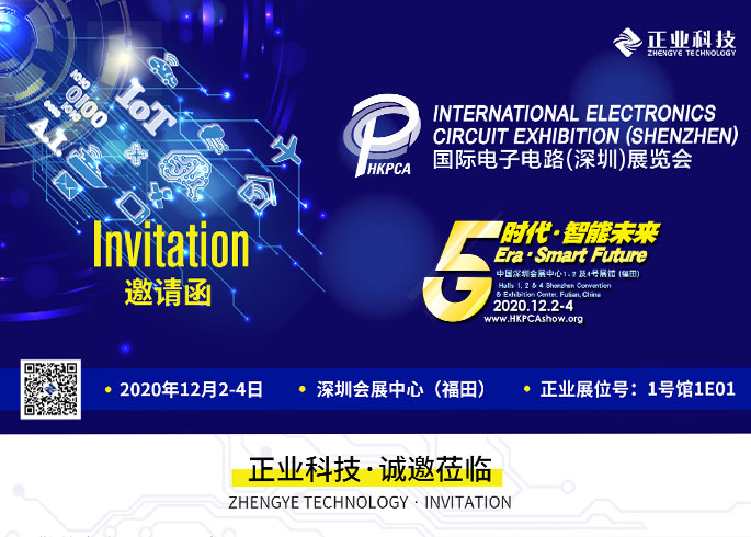 正業(yè)科技誠邀您參加2020國際電子電路(深圳)展覽會,時間:2020年12月2-4日,地址:深圳會展中心(福田),正業(yè)展位號:1號館1E01